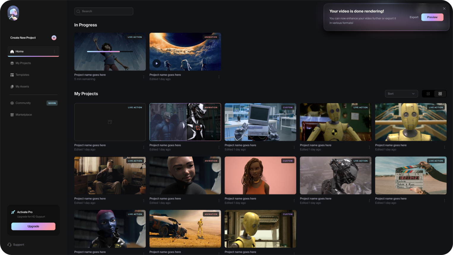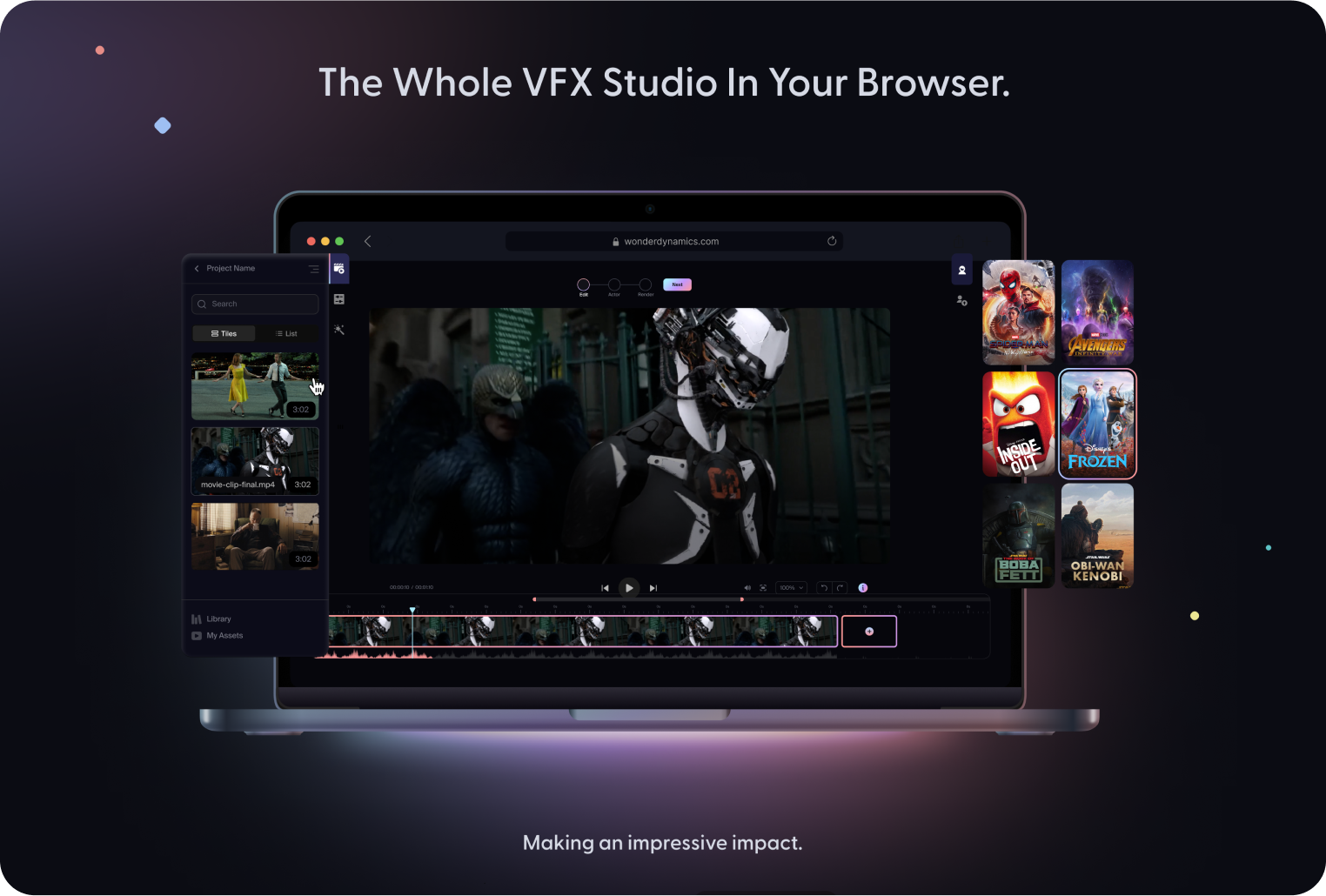 We designed WonderDynamics' app to provide users with a seamless experience, allowing them to easily and quickly upload videos and replace characters with their 3D models.